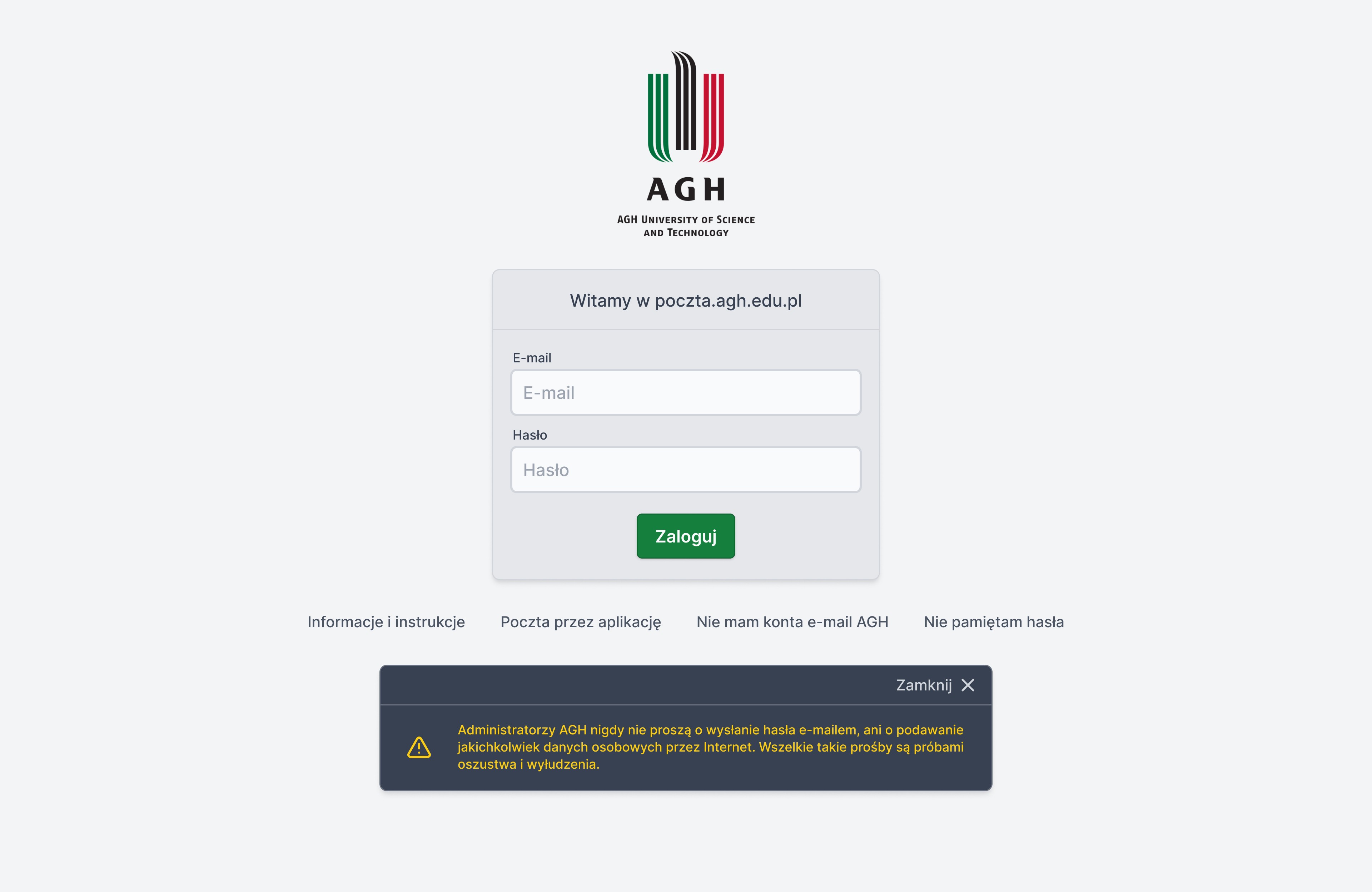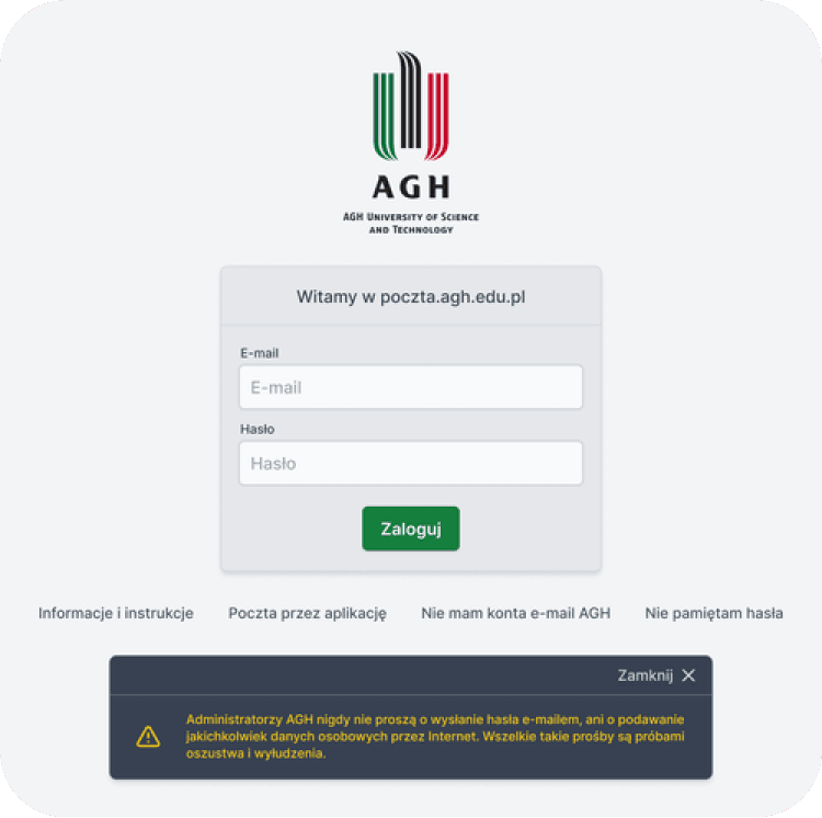 As a student at the University of Science and Technology, I needed to log in to my student email. Since I created my email at the beginning of my studies, I had never used it. After a few months, I returned and tried to log in because I needed my email to get a free student plan for a digital program. My experience was terrible when I realized that I couldn't log in. What mistakes were made on the AGH email login page?