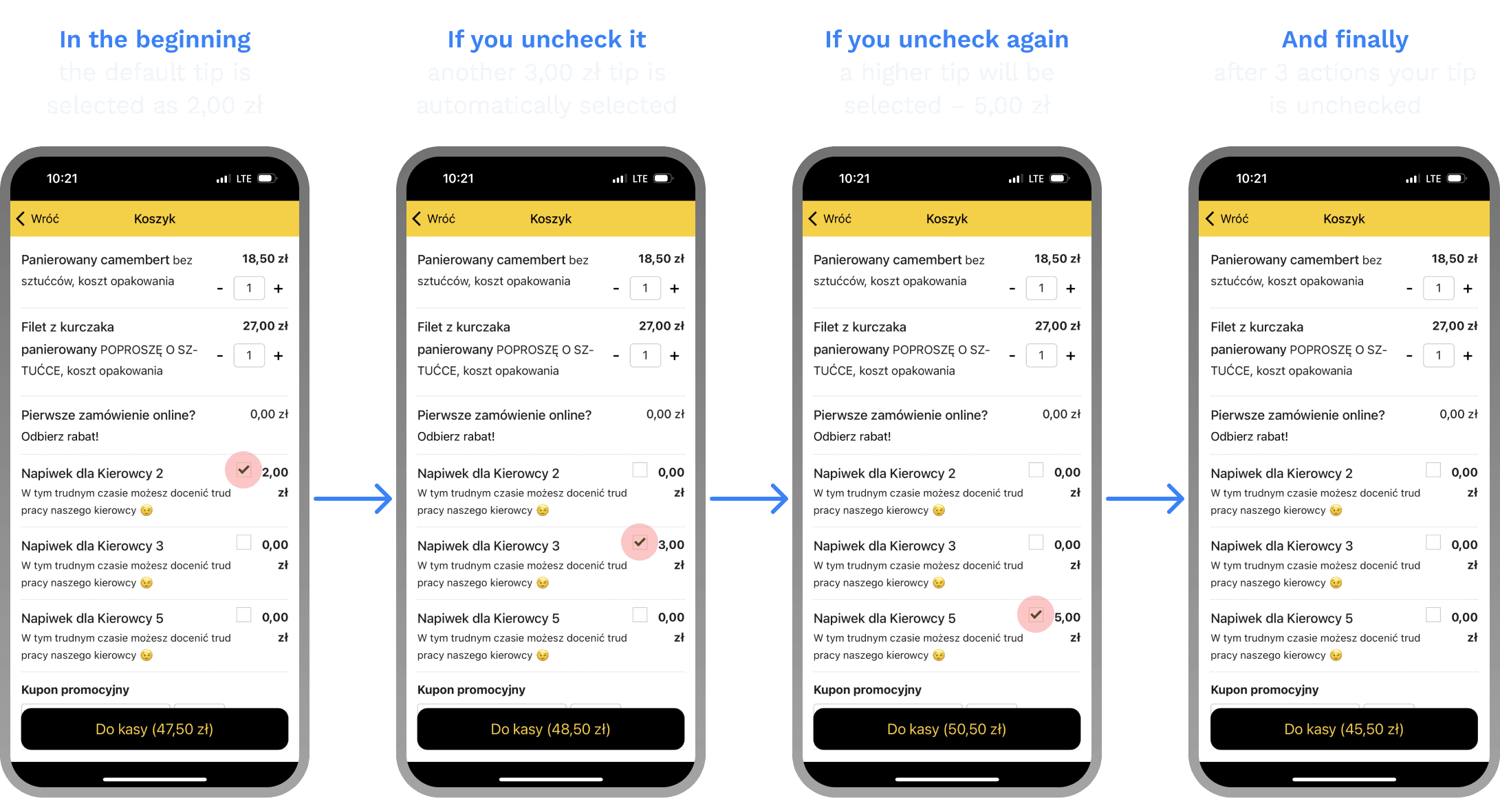Kukuryku is one of the most popular and highest rated Polish cuisine restaurants in Katowice. To boost their revenues they developed a tipping system on the mobile app. This case seems to be typical example of a dark pattern which damages the users' trust in the brand and therefore hinders the overall user experience.
